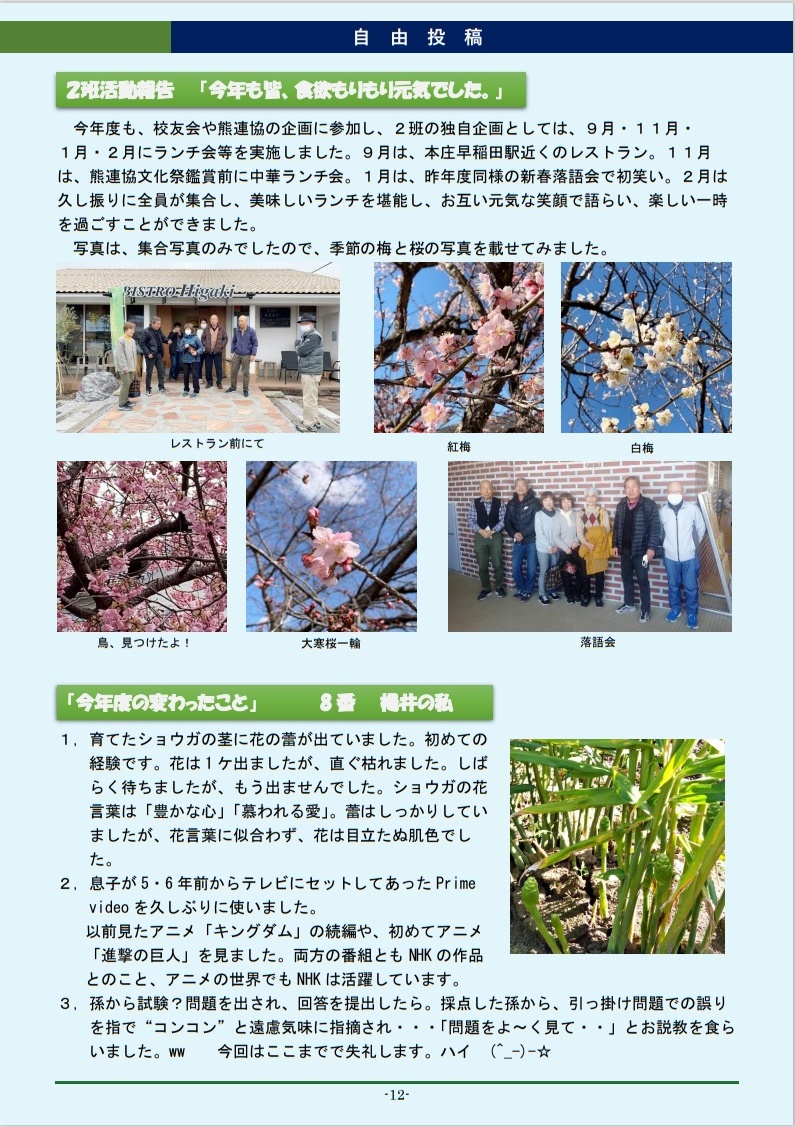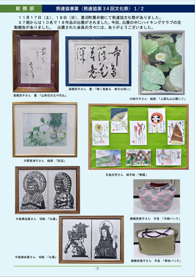 以下に各ページの縮小画像を示します。読みたい画像をクリックすると、ページが拡大します。なお、P.7~8の熊連協事業(熊連協文化祭)の展示品拡大画像を見たい場合は「熊連協文化祭 37期報告」をご覧ください。