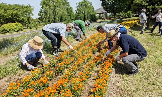 作業内容は、除草作業でしたが、これは植物の成長をコントロールし、景観を美しく保つには欠かせません。「花ボラ」は環境美化に貢献するだけでなく、健康的な運動になり、他期も含めた仲間たちとの交流の場ともなります。
