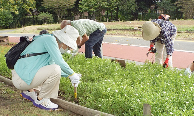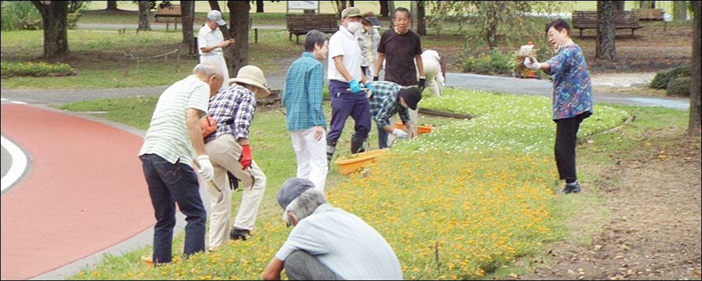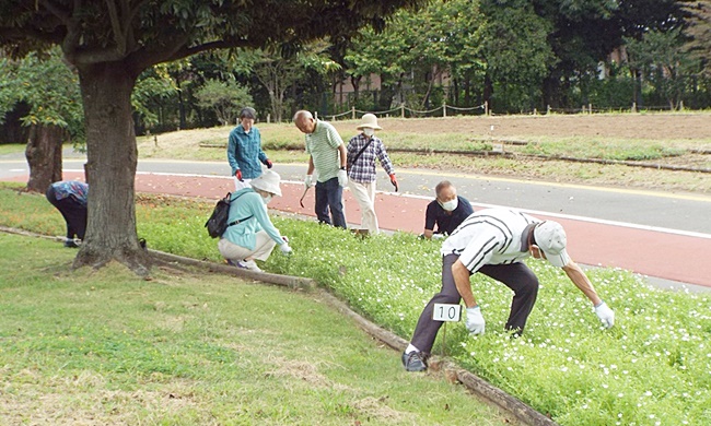 最初に近藤会長の挨拶、西田副会長から10月3日、4日の「学習会プラネタリウム鑑賞」について、石川文化祭実行委員長から「作品募集」の連絡、及びスポーツ文化公園の吉澤課長より11月8日は高校生の持久走があり花ボラを8時に開始し9時頃までに終了してもらいたいとの依頼がありました。続いてラジオ体操、その後除草作業を行いました。