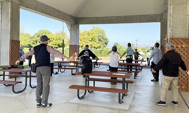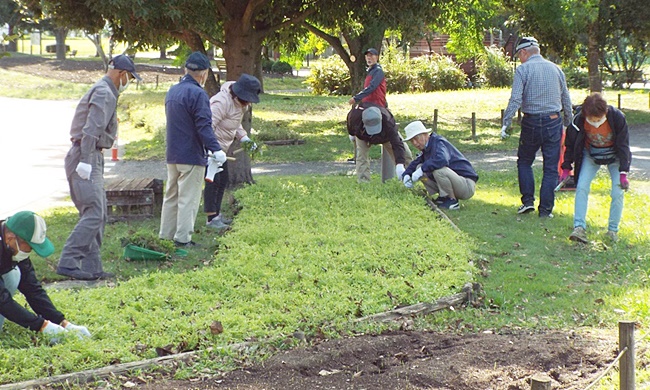 近藤会長の挨拶に続いて、石川文化祭実行委員長から10月4日に作品募集を締め切り、多数の出展がありましたが、まだ受け付けているので作品出展してくれるよう要望がありました。佐渡芸能祭実行委員長から芸能祭出演依頼。中嶋事務局長より学習会の結果報告プラネタリウム鑑賞10月3日58名、4日34名、計92名の参加者であった。次にスポーツ文化公園の吉澤課長の作業内容の説明、その後ラジオ体操で体を解し作業開始となりました。