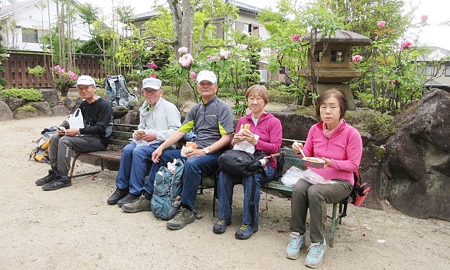 お参りを済ませ、ボタンの花咲く箇所で昼食と休憩をとりました。