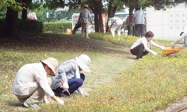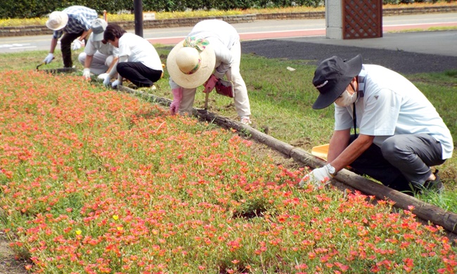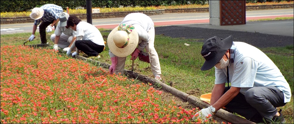 今日は暦の上では立秋でしたが、朝の曇り空から9時頃には真夏の日差しとなり、いつもの暑さになりました。6月12日に植えた「ポーチュラカ」は暑さと乾燥に強い花らしく負けずに元気に咲いていました。花壇内の雑草取り(暑さのため少ない)に汗を流した後、公園事務所から提供された冷えた飲み物で喉を潤し情報交換後に散会しました。