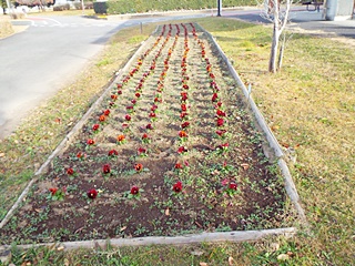 11月13日に植付けたパンジーは日当たりの良い場所は、花が綺麗に咲いていましたが、日陰の苗は開花していませんでした。しかし、小さな草が全体的に出ていたので、鎌で除去しスッキリしました。冬の寒さに耐えて春には満開になり、私たちの目を楽しませてくれるでしょう。