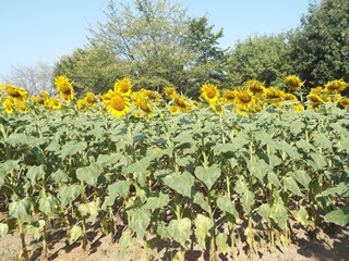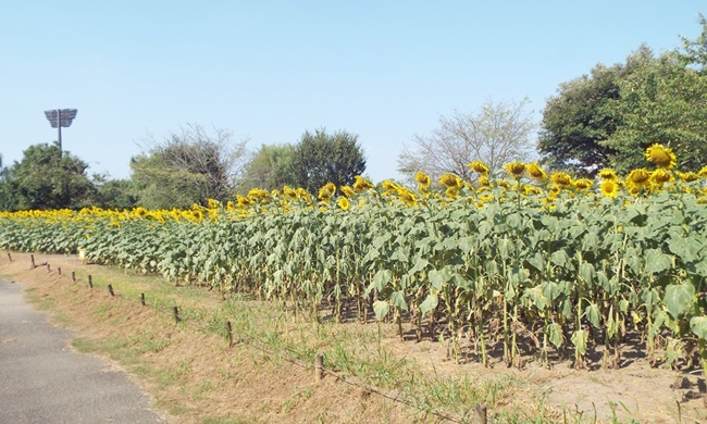 ポーチュラカの苗を植えて2ヶ月経ち、高温少雨のためか雑草の伸びも少なく短時間で終了しました。隣のひまわり畑では背丈の異なる数種類のひまわりが開花して、目を楽しませています。暑い中、25名の参加者の皆さん大変お疲れ様でした。公園側から、いつものように冷えた飲み物を頂き感謝しながら、乾いた喉を潤しました。