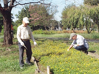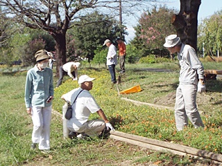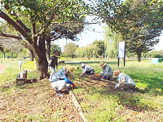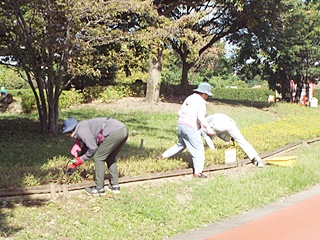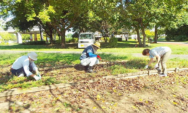 昨日、秋分の日が過ぎ、残暑が少し和らいだ中で、花ボラが行われました。隣の花壇に咲いていたヒマワリもすっかり片づけられ整地され季節の移ろいを感じられました。