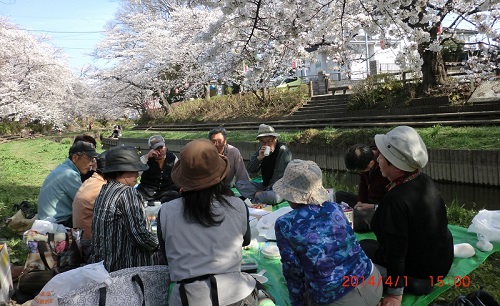 4月1日の午後、1班は、吹上の元荒川で花見の宴を行いました。 |