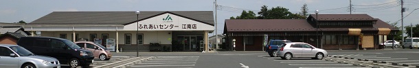 上の写真が「JAくまがや・ふれあいセンター江南店」の全景です。 右の建物が「なご味」で、2枚の簾がまくりあげられているのはデザインではなく、強風で屋根に吹き上げられてしまったものだそうです。 平山家住宅は、ここより歩いて数分の所にあります。 |