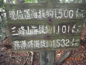 コースは、三峰神社駐車場 〜 登山道分岐 〜 二股桧 〜 炭焼平 〜 地蔵峠 〜 霧藻ヶ峰