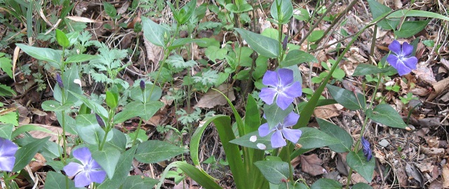 | 蓑山(美の山)に咲くツルニチニチソウ 撮影日:2014年4月28日 ハイキングクラブ提供 |