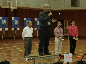 日本スポーツ吹矢協会 徳世理事の挨拶 西田審判長 競技説明