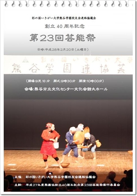 第14期が荒川公民館で文化祭を開催。以降、熊連協文化祭として開催を定例化。会場東京電力、熊谷市緑化センターと変遷。