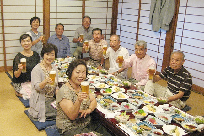 3班は7月27日(水)午後6時から熊谷・万平町「川仁」で暑気払いを行った。班員11人中、10人が参加した。この店は班の長老、大村さんの紹介。料理は看板の天麩羅を初め刺身、煮魚、鰻などなかなかの物。懇談の中で班理事から今年度の日程表が配布され、既に実施した「パークゴルフ」(6/22)、ジャガイモ掘り(7/2)の報告が行われた。