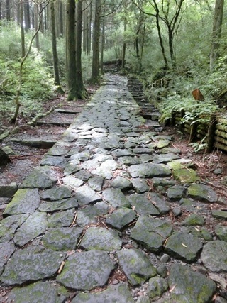 「於玉坂」「白水坂」「天ヶ石坂」と約1Kmの石畳の上り坂を越えると元箱根までのゆるい下り坂、滑りやすい石畳を注意して歩きます。
