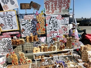 この日、大磯漁港で「おさかな朝市」が開催されているとのこと、まずは見学に。あいにく、海が荒れているため漁は中止でしたが、港では市内のお店や・バザーの出店で賑やかに開かれていました。