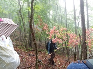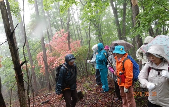 眺望が良い場所から、霧で何も見えなかったことは残念でしたが、雨でややもやっている神秘的な森林、山ツツジの花から落ちる水滴等晴れ間の時と全く違う森林の様態を体験する事ができました。