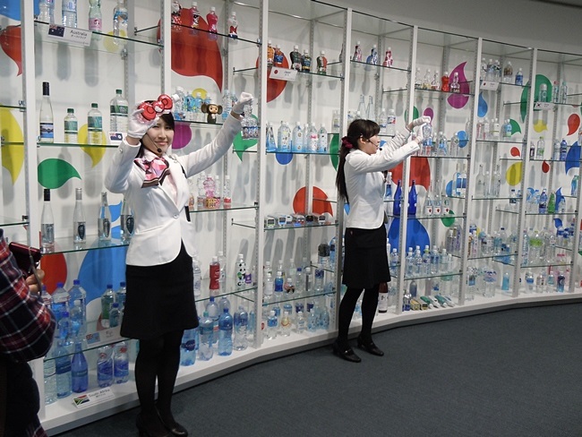 世界47か国の水約2000本を集めたギャラリーを見学。3名のコンシェルジュにより、それらのユニークなボトルデザイン、世界の水事情などが紹介された。