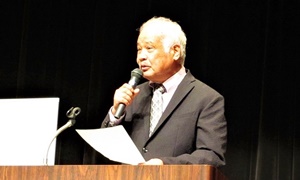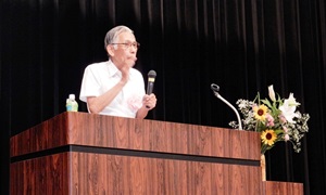 第2部はジャーナリスト佐藤安弘(さとう あんこう)先生に「来た球を打つ(年老いてからの幸福論)」を講演していただきました。参加者数400名でした。