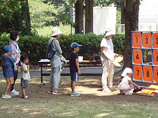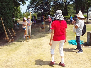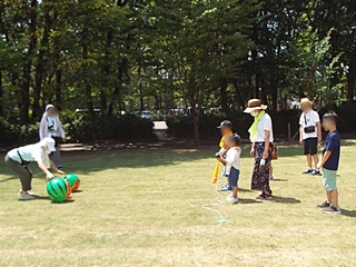 令和5年埼玉県農林公園夏祭りが、2日間行われました。夏真っ盛りの8月実施のため、室内の遊びについては冷房が効いている情報館「のぴあ」を使用、屋外の遊びは猛暑で2日間大変であったが、ゲーム場所を木陰に移動し、又交代で休憩を取り、こまめに水分補給することで幸いにも日射病、熱中症にならずに無事終了することができました。夏祭りに参加してくれた子供達と一緒に遊んで、楽しいひと時を過ごしました。