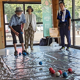 メニュー 『室内』①ボッチャ体験 ②輪投げ ③昔遊び(お手玉、けん玉フラフープ)