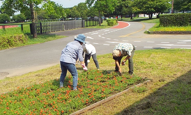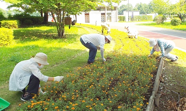 皆さん熱中症に注意し、除草作業を行い45分ほどで終了しました。花壇が見違った感じです。
