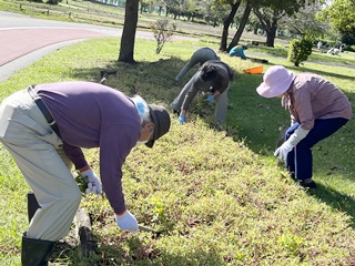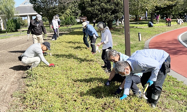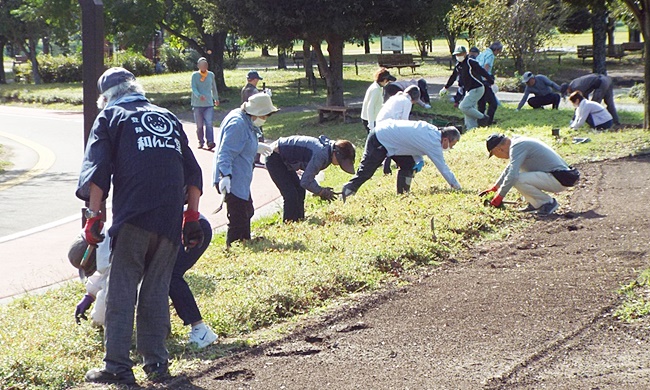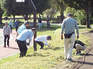 近藤会長の挨拶に続いて、石川文化祭実行委員長から10月4日に作品募集を締め切り、多数の出展がありましたが、まだ受け付けているので作品出展してくれるよう要望がありました。佐渡芸能祭実行委員長から芸能祭出演依頼。中嶋事務局長より学習会の結果報告プラネタリウム鑑賞10月3日58名、4日34名、計92名の参加者であった。次にスポーツ文化公園の吉澤課長の作業内容の説明、その後ラジオ体操で体を解し作業開始となりました。