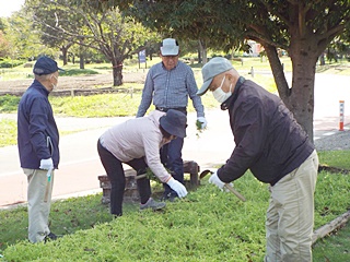 このところすっかり秋めいて涼しくなりました。今朝は風が吹いており日陰は肌寒く、日なたが恋しい朝でした。本日は第10回花ボラが行われ、38名の方に参加して頂きました。