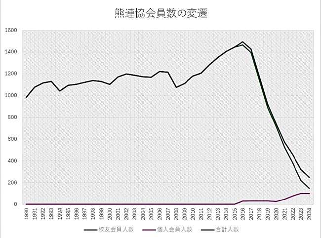 熊連協の会員数は、会員の高齢化を背景としていぜん減少傾向に歯止めがかかっていません。