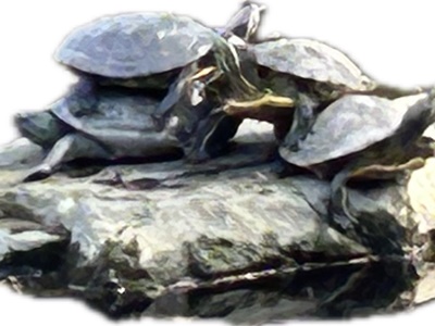 池にはカメが4匹も重なっていました。