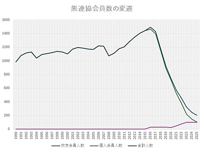 熊連協の会員数は、会員の高齢化を背景としていぜん減少傾向に歯止めがかかっていません。
