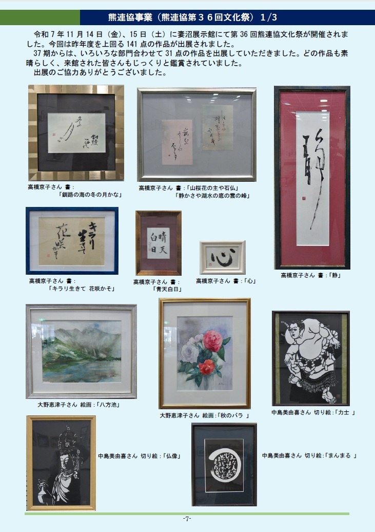 「熊連協文化祭」の出展作品の拡大画像は「熊連協文化祭 37期報告」HPをご覧ください。
